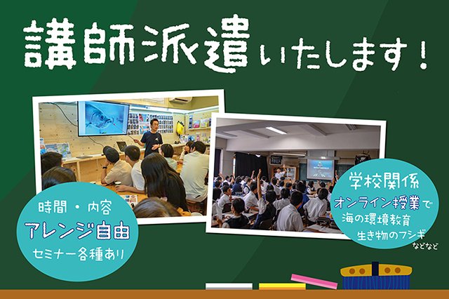 不思議な生物や環境について人の好奇心をくすぐる海中世界。パパラギスタッフはそんな海について得意な科目ごとの「海の授業」を実施しています。 学校や職場で海の授業をやってみたい方は是非ご相談ください。 -