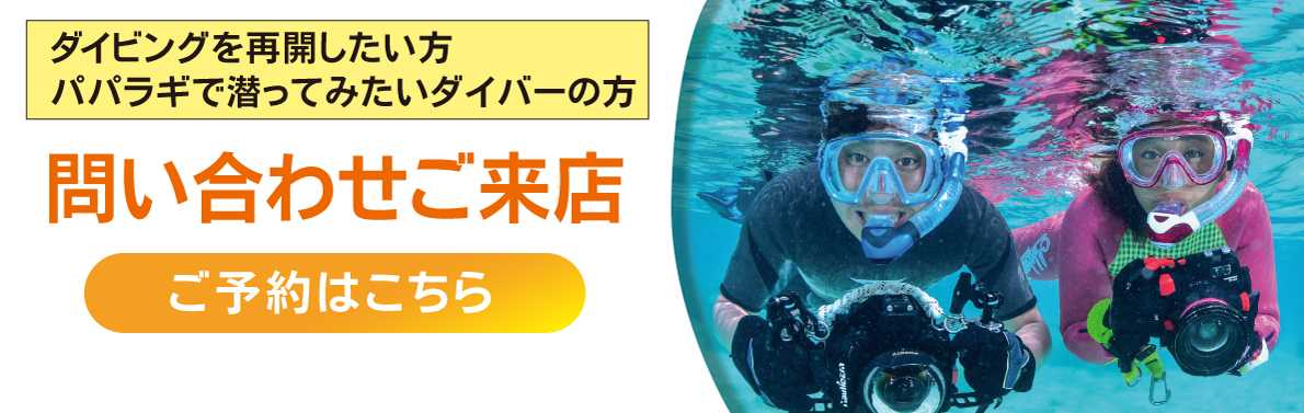 これからダイビングを始めたい方、すでにダイバーでパパラギで潜ってみたい方はどうぞお気軽にご来店ください。