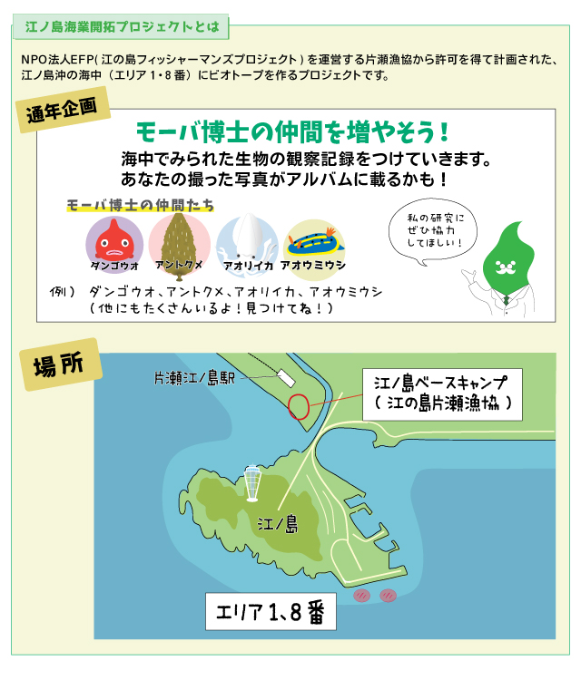 江ノ島藻場スペシャルティコースは、藻場に関する基本的な知識を身につけ、江の島の藻場を取り囲む生態系と藻場と関わる人の活動を知ってもらい、一人一人ができることを考え、行動に移すことで「藻場の再生とこれからの海を守り創り上げていく」ことをゴールとしたスペシャルティです。
