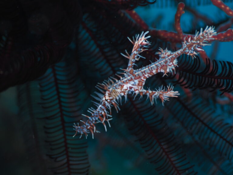 他にもネジリンボウもアチコチにいたりオオモンカエルアンコウやニシキフウライウオ、無限にくねくねするチョウチョウコショウダイの幼魚などとにかく被写体が豊富!