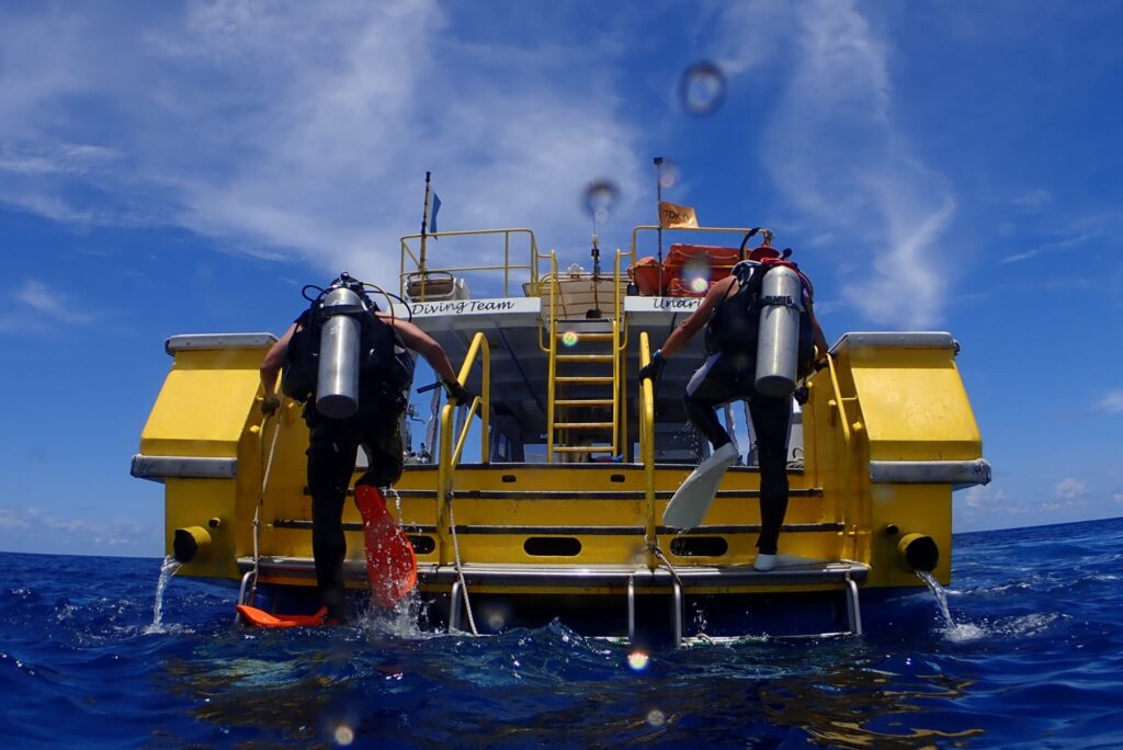 エキジットも船は停泊しないので、フィンを履いたまま上がります。