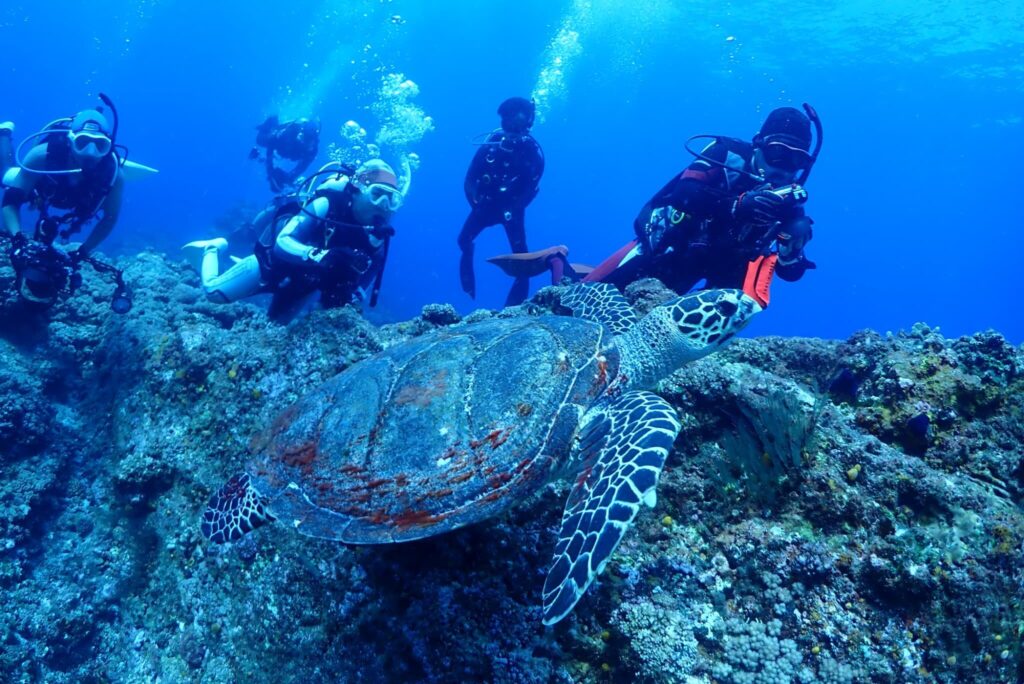 1・2本目は魚影No.1の「三の根」というポイントで潜り、エントリー直後からタイマイがお出迎えしてくれました。
