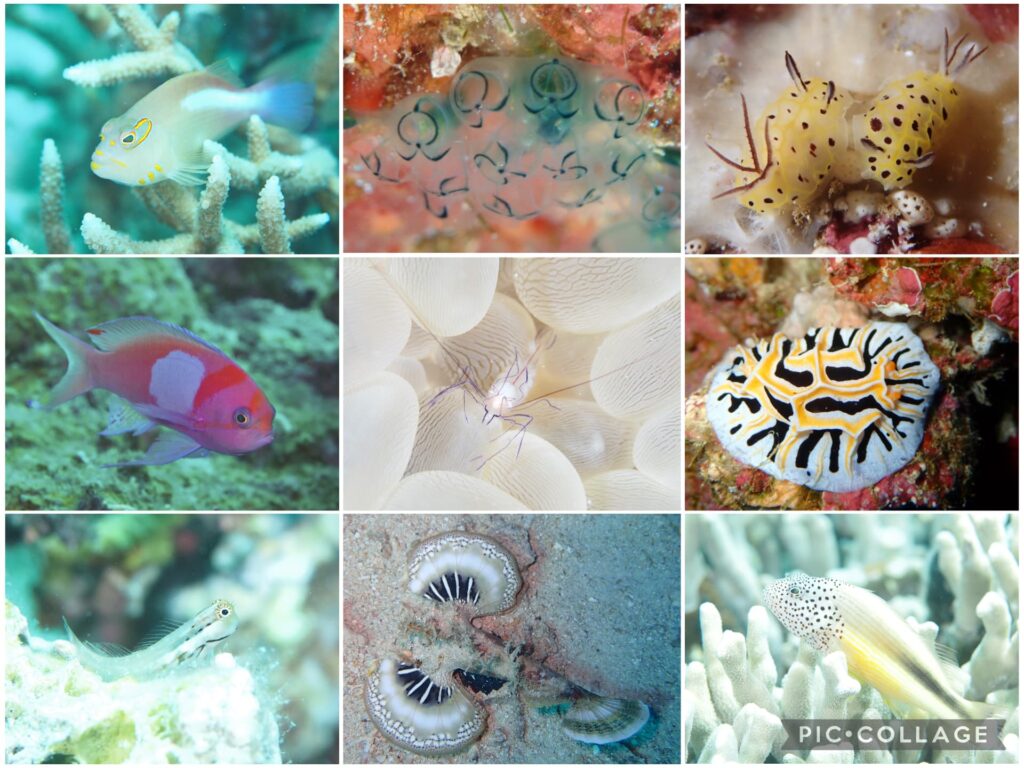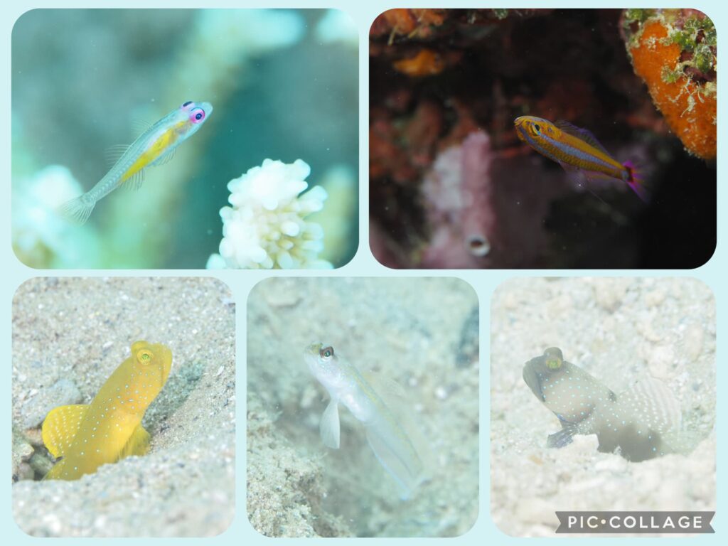 サロンパス(中段左、和名スミレナガハナダイ)を始め、笑いボヤ(上段真中)やバブルコーラルシュリンプ、ウミウシ各種もザックザク。