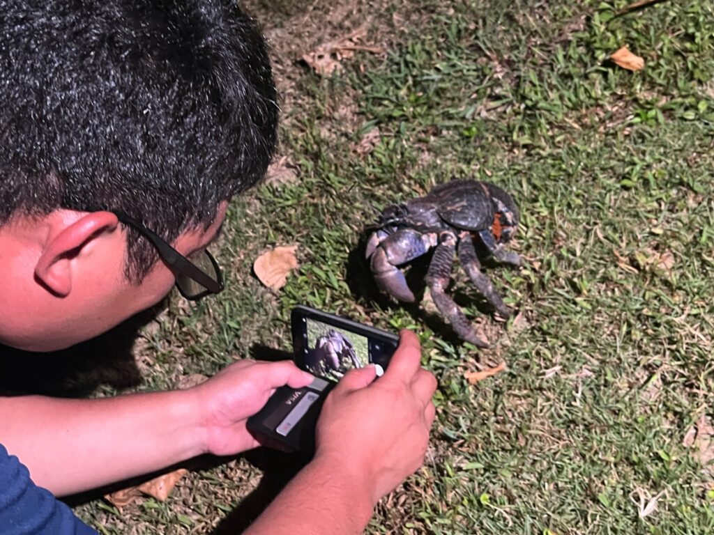 その辺を歩いている抱卵中のヤシガニ観察をしたり。