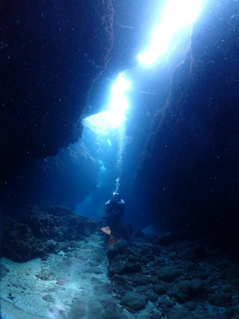 アドレナリン全開のオガンドリフトダイビングを2本楽しんだ後、3本目は癒しの「光の宮殿」ポイントへ。