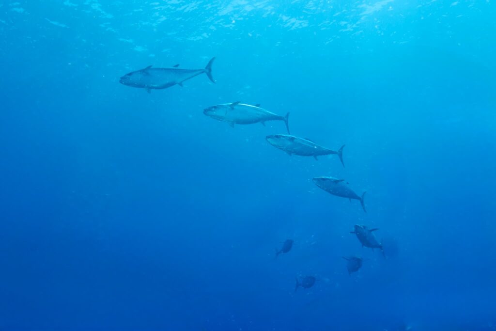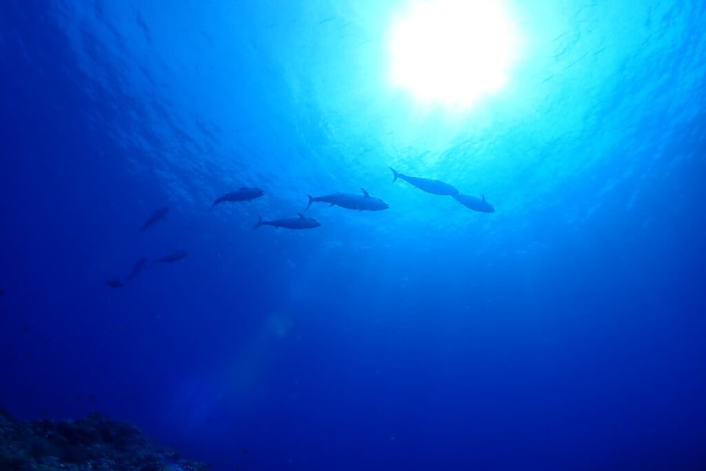 三浦半島の卸売市場でしか見れ無さそうな1m越えサイズのマグロが、隊列を組んで頭上をしばらく回遊します。