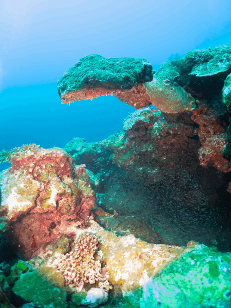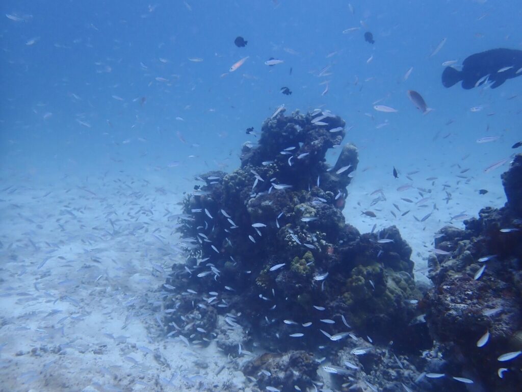 サンゴや根にはたくさんのスズメダイの仲間、ハナゴイたちがカラフルで癒されました。