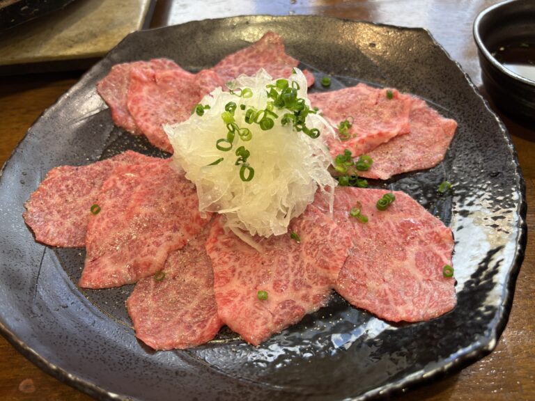 両面を軽く炙って真ん中の玉ねぎをお肉で包んでポン酢につけていただきます。