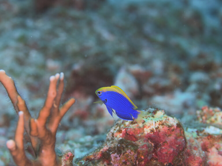 伊豆でたくさん見るソラスズメダイと違って背中が黄色いの特徴です!