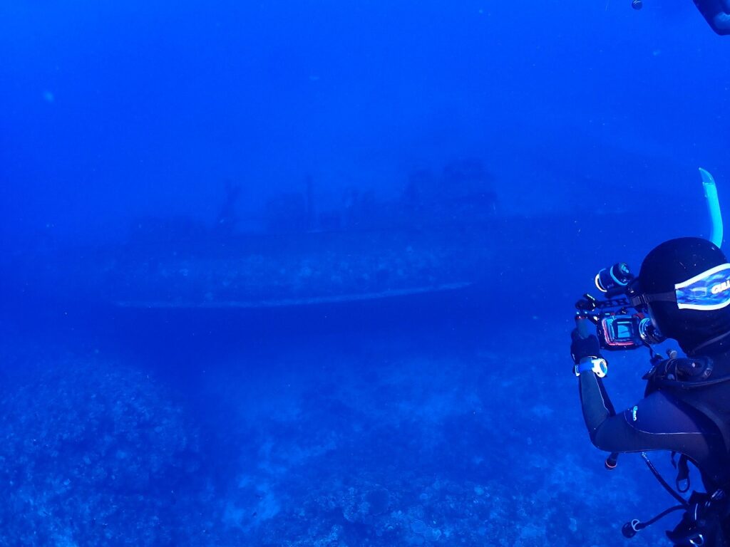 船の1番浅いところで30m以上なので全体が見渡せる水深で撮影しました