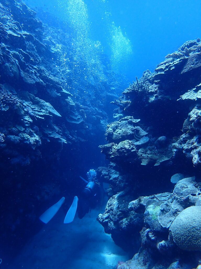 地形のポイントもあって、サンゴのクレパスの間を縫うように移動していきます