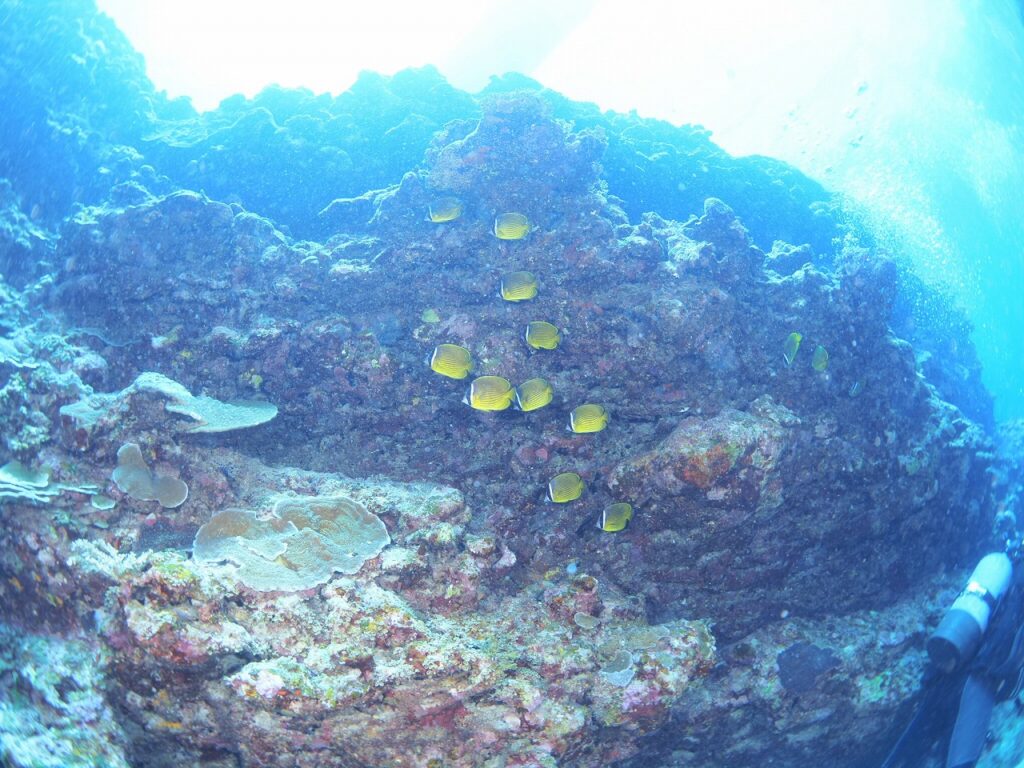 中層に戻ると、チョウチョウウオが群れていたり