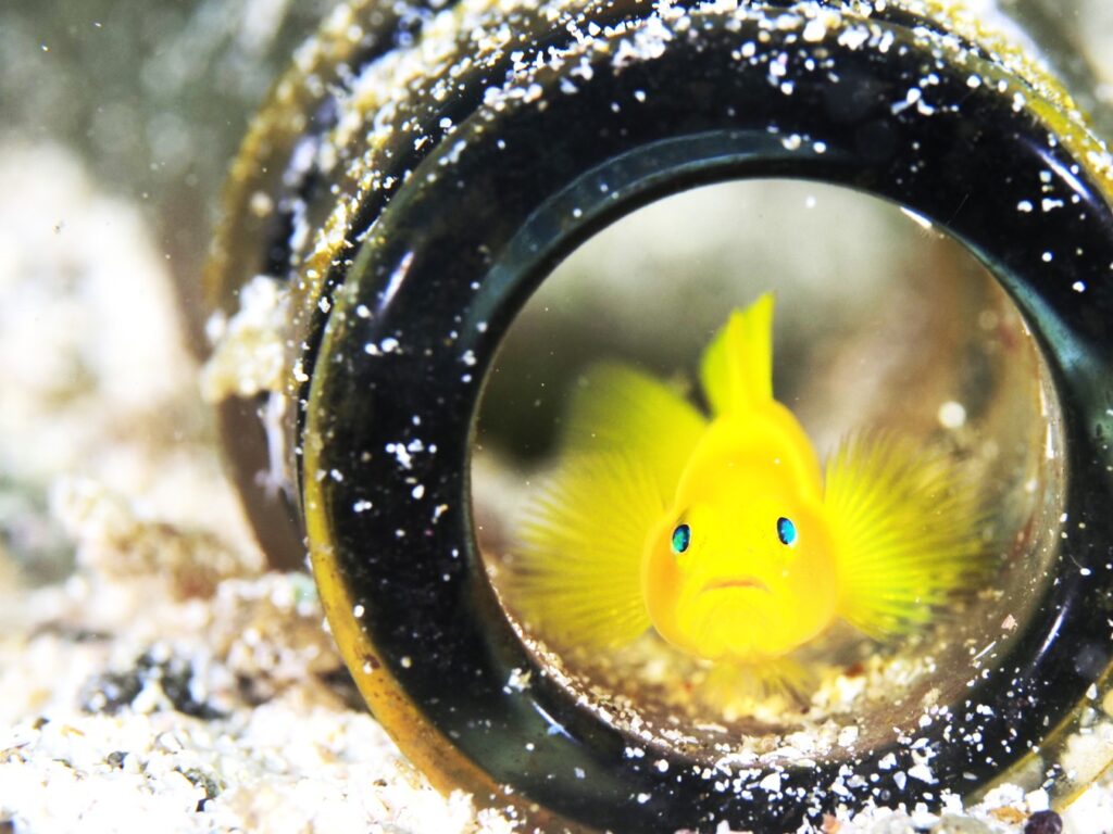 ビンを住処にしているミジンベニハゼもほぼ0距離で寄れるいい子でした。