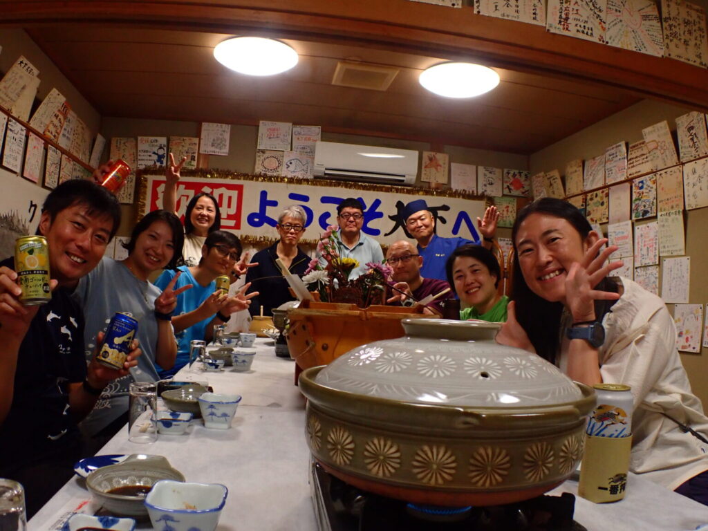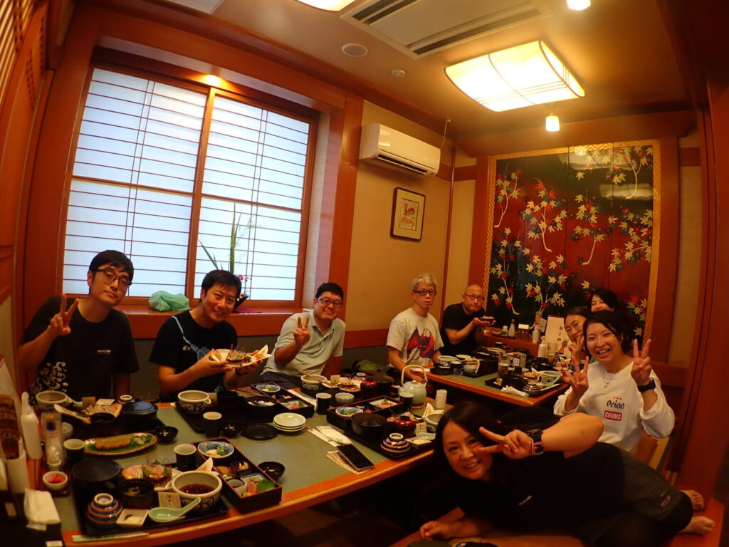 宿では今回も、マダイの塩焼き(3キロ)やオオモンハタのから揚げにオオモンハタの煮つけ、伊勢海老などのお刺身のお造り、そしてクエ鍋としゃぶしゃぶ!!
