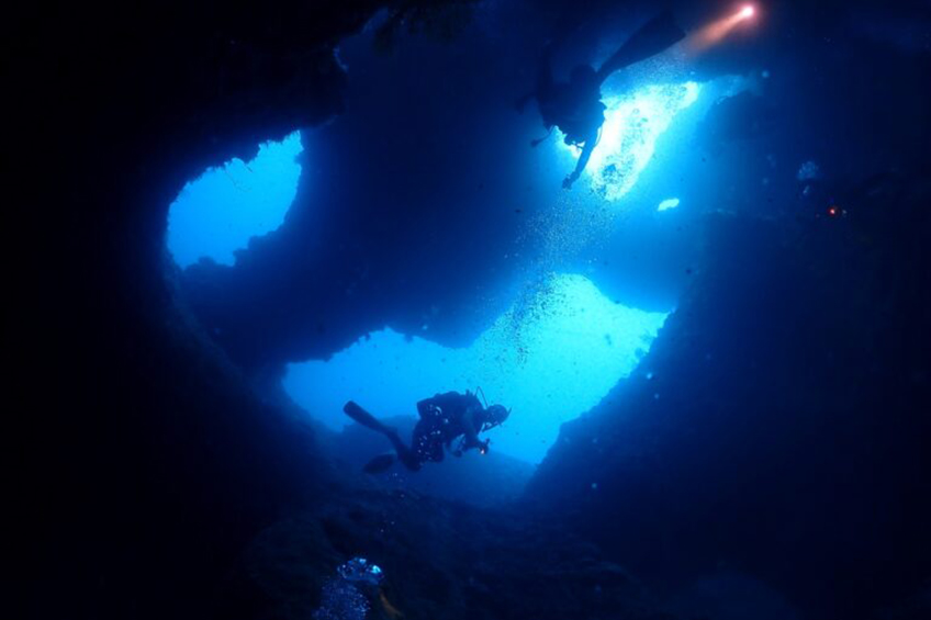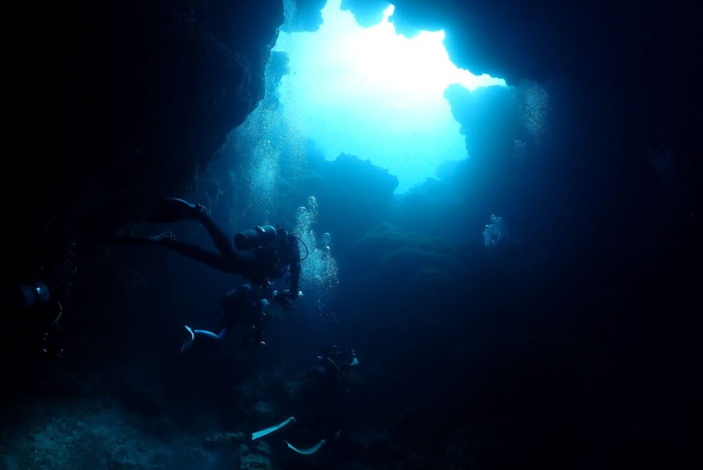 魔王の宮殿(の入り口から撤収するダイバーの図)とか。
