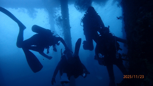 迫力ある沈船ポイントでは、船内を通ることも出来ます。