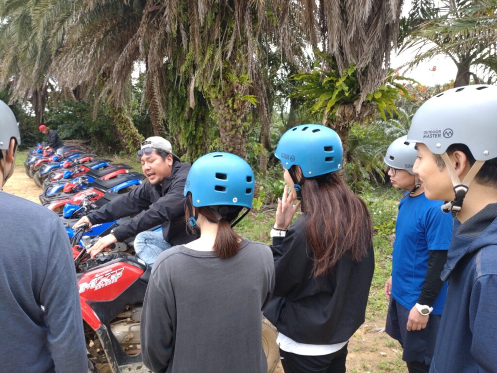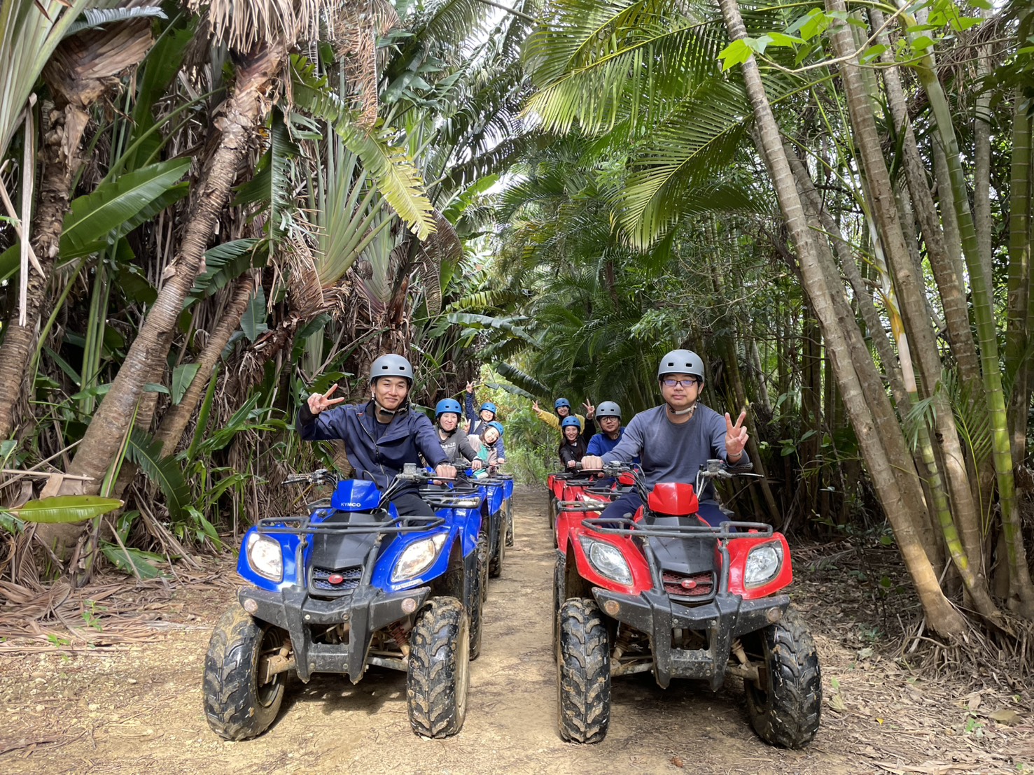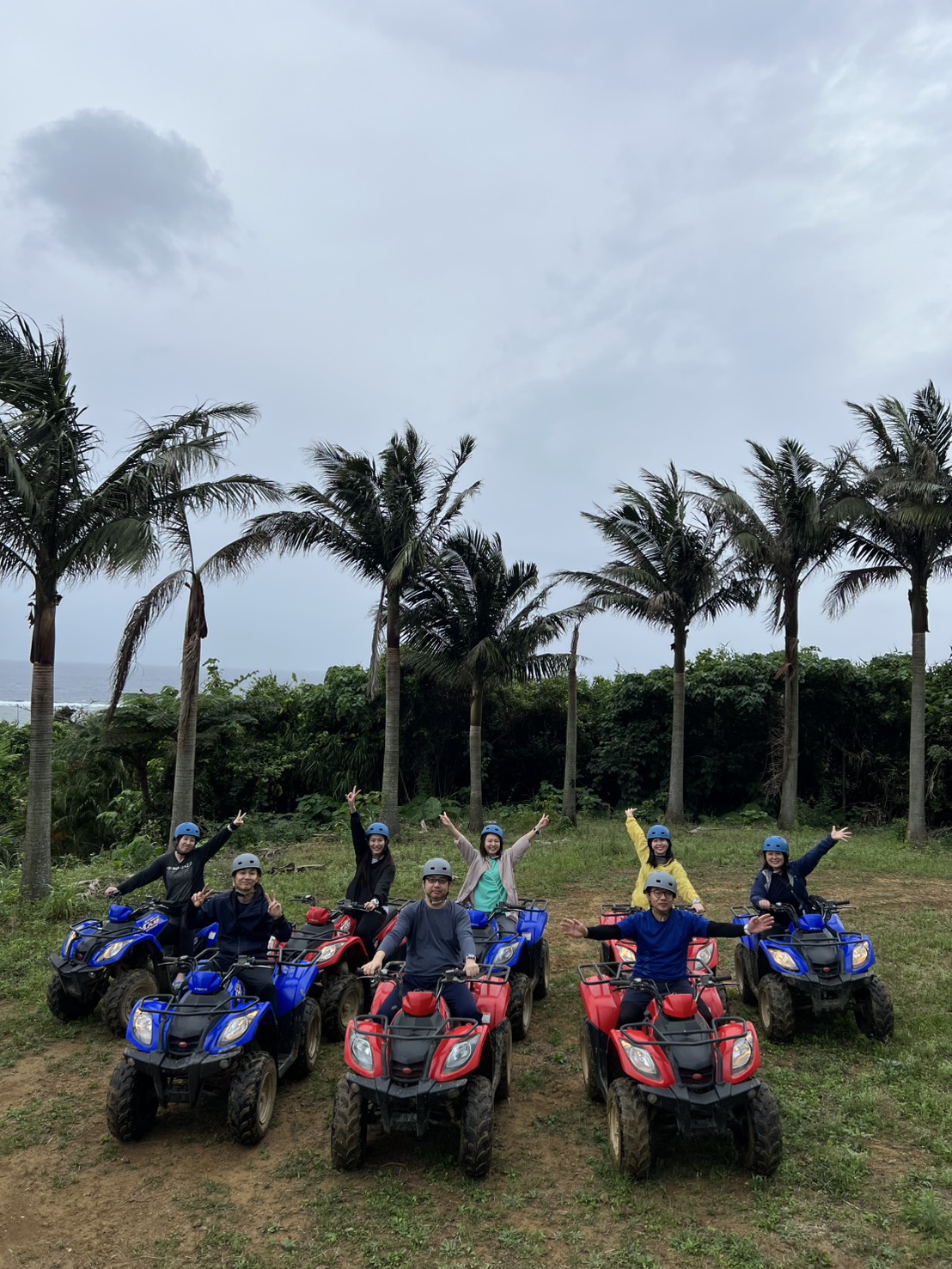 みんな初チャレンジでしたが、ジャングルの中をバギーで周りつつ、シークワーサーの木をみせて貰ったり貴重な体験ができました!