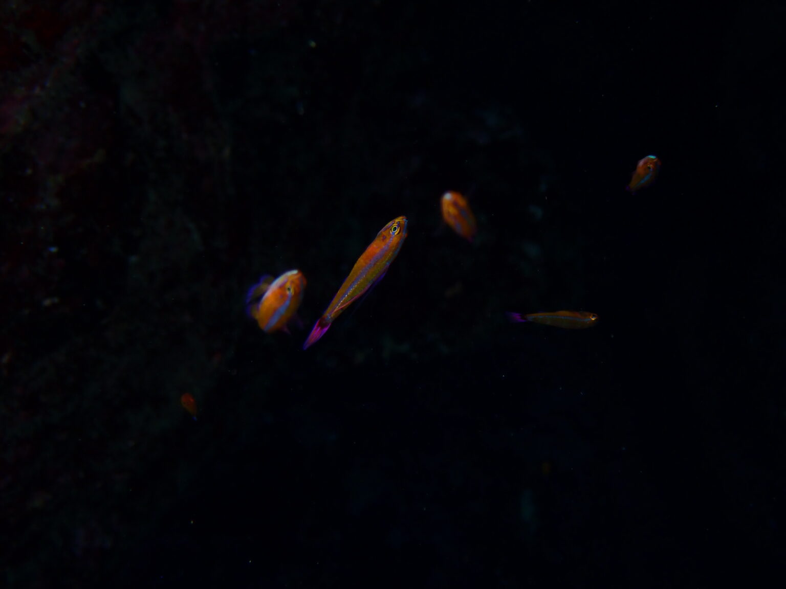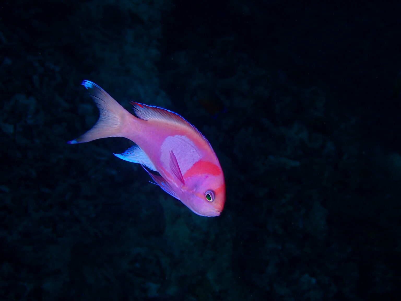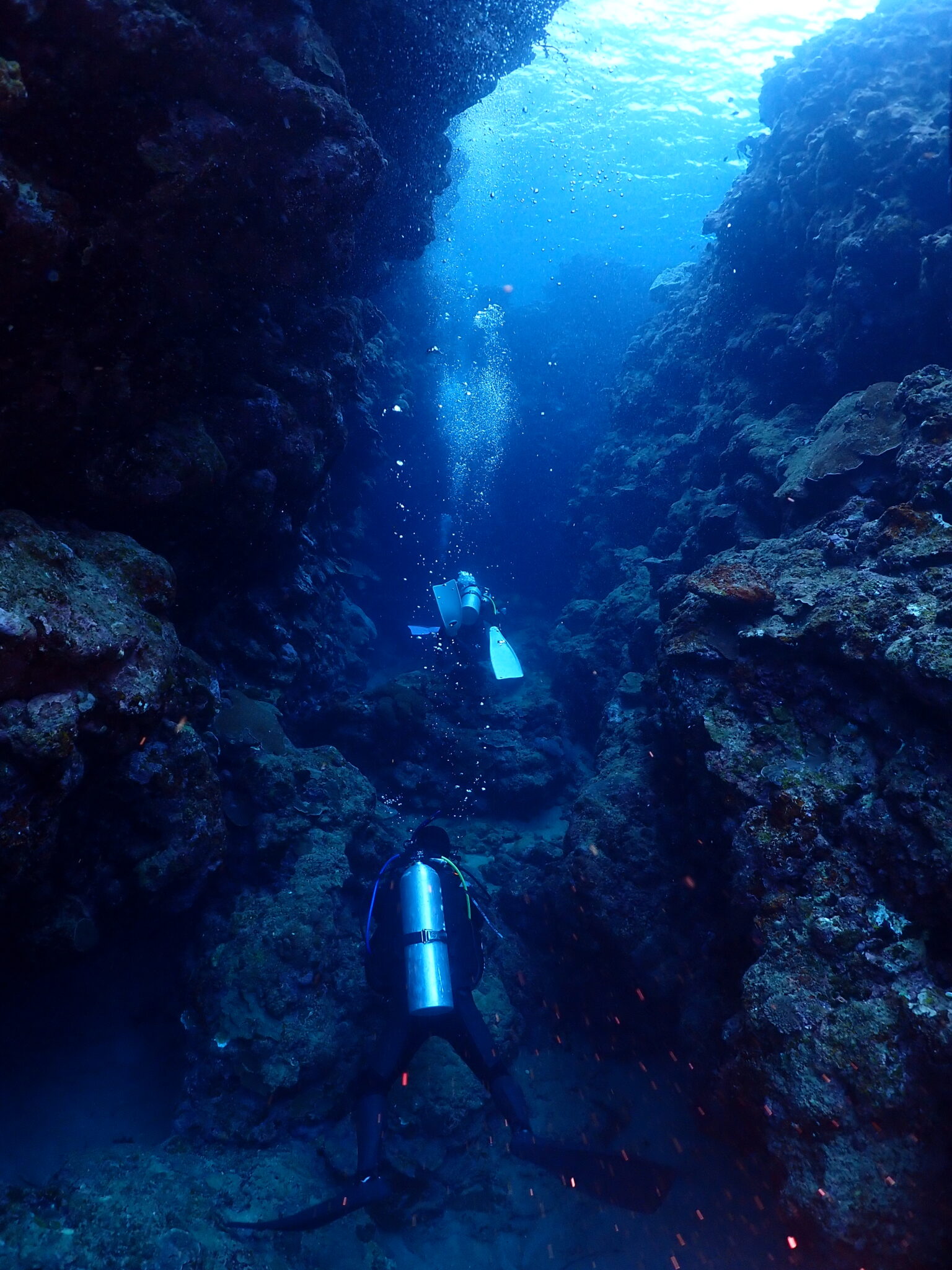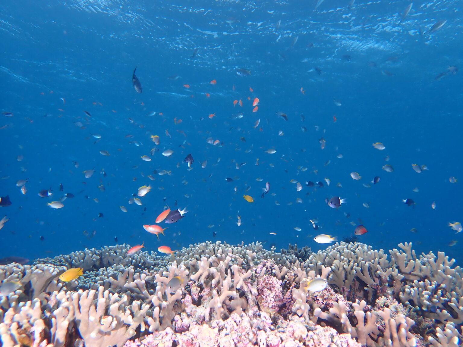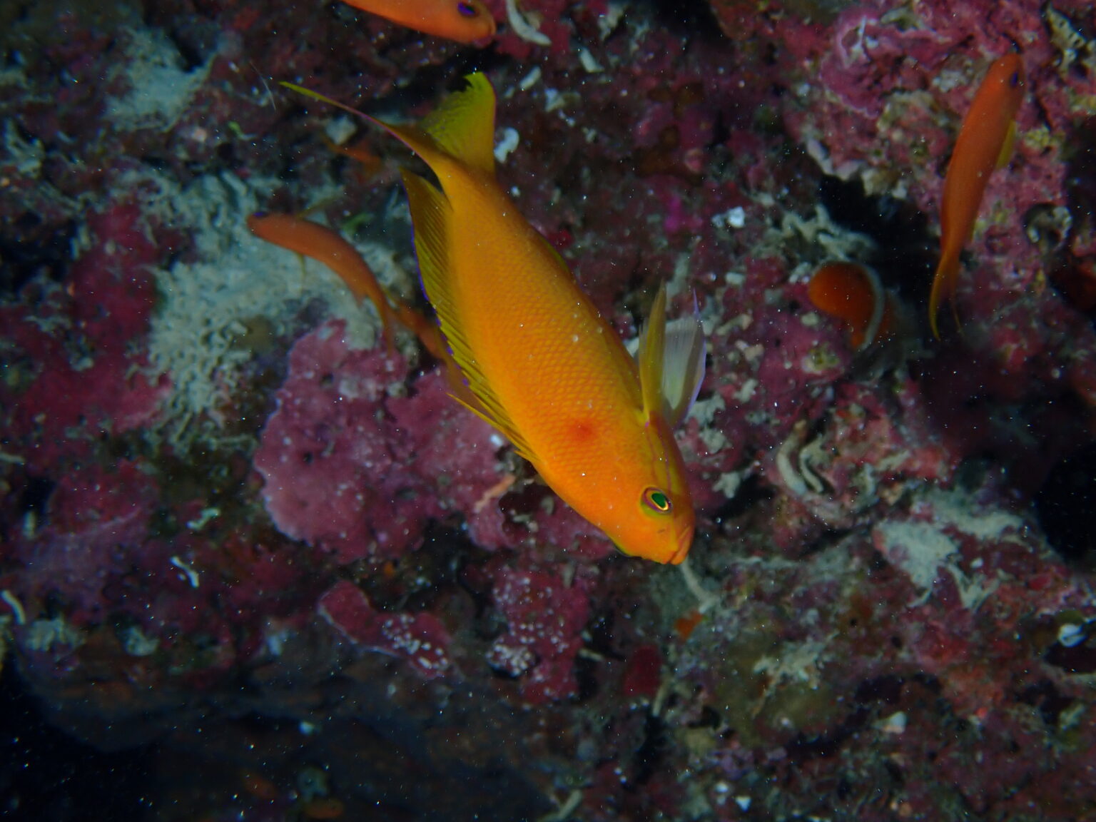 スズメダイの仲間や、ハナミノカサゴやテンジクダイ、キンメモドキ、ヨスジフエダイなどが群れ、水中カメラ派にも人気のスポットなんだとか。