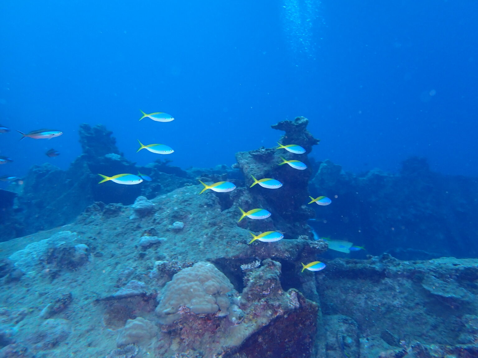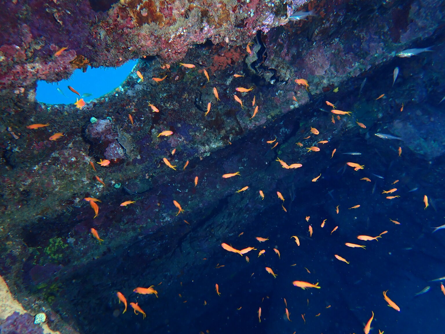 朽ちた貨物船はすっかり魚達の住み家となり華やかでした!