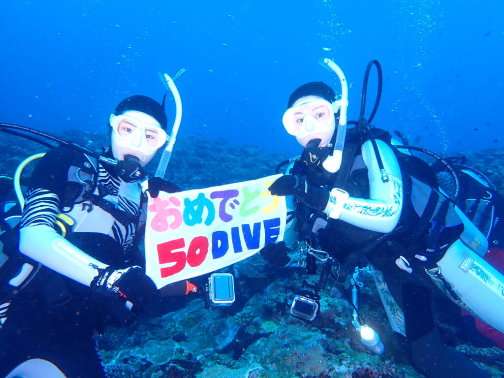 そんなマンタに出逢えた今回のツアーで、50本記念の方がお2人!!
