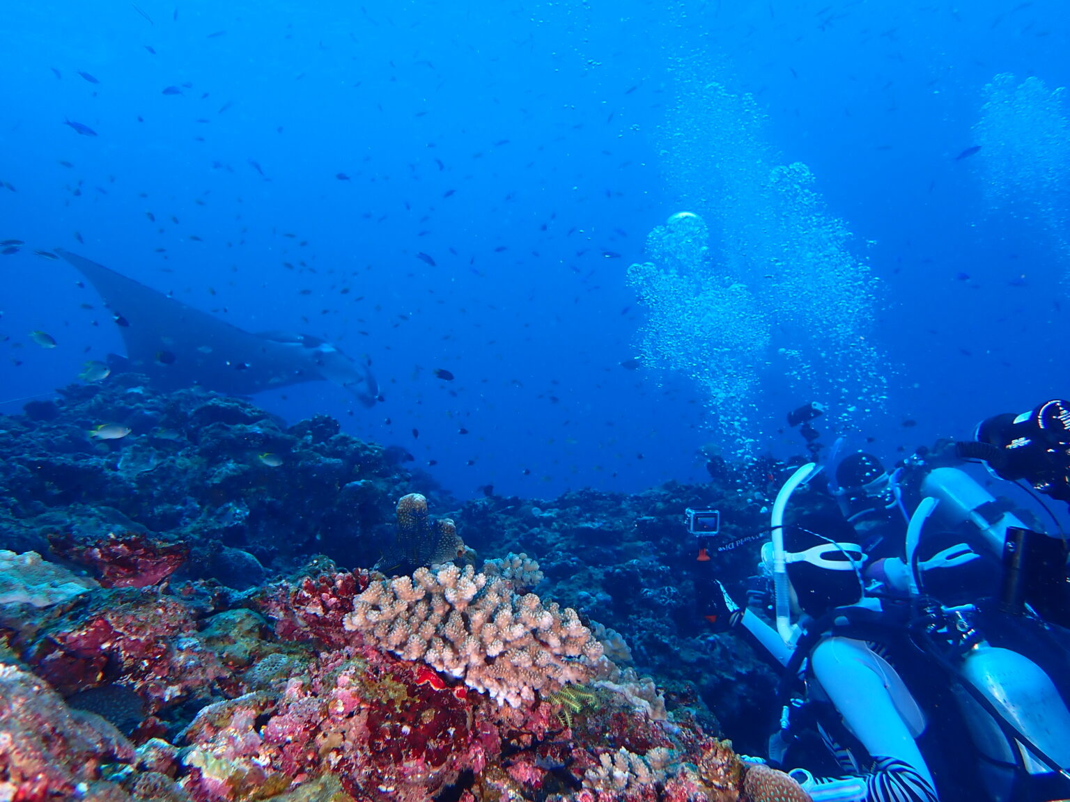 マンタさんの通り道を塞がないように、着底できるところで、下から見上げるのがルール。
