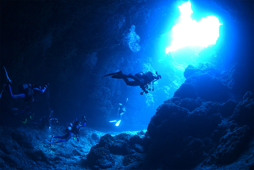 水中での浮遊感を味わいながらダイナミックな地形を縦横無尽に泳ぎ回る…、誰しも一度はやってみたいこの「洞窟ダイビング」。