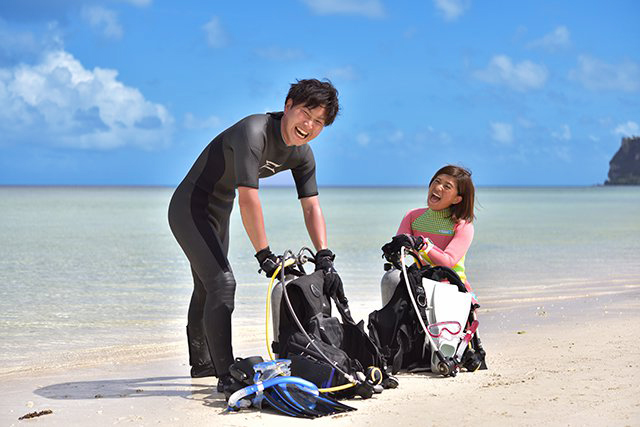 久しぶりのダイビングを思い出してもらえるように、午前中はプールのような穏やかな環境の海でゆっくりとダイビングをします。 セッティングや、耳ぬき、スキルなどひとつひとつ不安に思うことを解消していましょう! 担当インストラクターが皆さんのペースに合わせて行います。